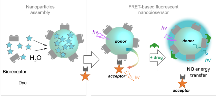 Biosensors are powerful tools that can detect biological or chemical analytes and convert them into measurable signals. Real-time detection is important for many applications. Funded by the European Research Council, the COMET project will develop innovative optical biosensors based on communicating nanoparticles whose response is modulated by the presence of analytes, especially opioids. Specifically, the project will investigate the self-assembly of fluorescent organic nanoparticles (FONs) with a biological recognition moiety in water. The FONs will be integrated into nano-constructions to enable energy transfer between donor and acceptor FONs. Stimuli-responsive biosensors will be designed based on the triggered disruption of these nano-assemblies by opioids. This new generation of continuous ratiometric biosensors will have significant implications for point-of-care and bio-imaging medicine.
