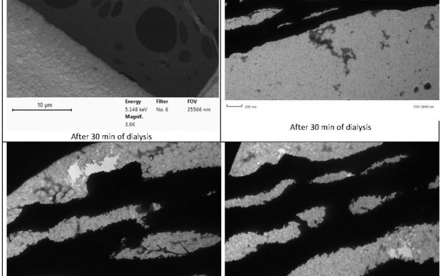 Description: The goal of the FMF consortium was to create structures that can be manipulated with applied magnetic fields and to formulate mathematical models to predict their behavior in magnetic fields of different configurations. Different structures of interest of string-like flexible magnetic filaments (FMF) were synthesized and studied. To develop deeper understanding of these micro-devices, new numerical algorithms were developed in close collaboration with parallel experimental investigations for wide variety of particular applications. One of these systems consists in magnetosomes, which are natural magnetic chains present in magnetotactic bacteria. Here it is possible to use a biomimetic approach and look at how different micro-organisms maximize the necessary properties at a given energy consumption. Following a biomimetic approach, the task of the LCPO team was to prepare magnetic filaments from iron oxide nanoparticles co-assembled with charged copolymers (polyelectrolytes) at a controlled salinity (through a dialysis process under a static magnetic field), as shown on the electron micrograph on the left. Description of the behavior of these three systems once internalized in biological cells will include the consideration of the “cytoskeleton” surrounding the strings that also tunes their dynamic response. In addition to those purely scientific outputs, the project is being valorized by technological development with a regional SME, Cordouan Technologies, by developing a new product in the field of scientific instrumentation. Unlike most dynamic light scattering (DLS) setups restricted to the study of isotropic colloids, we developed and patented in Europe and worldwide a multi-angle polarized DLS setup that is able to characterize anisotropic e.g. elongated particles, by measuring both translational and rotational diffusion constant and hence of the aspect ratio of the objects. This device was tested and qualify on different model systems (rigid gold nanorods or flexible polymer filaments) and led in Fall 2021 to the release of a commercial product named "Thetis".