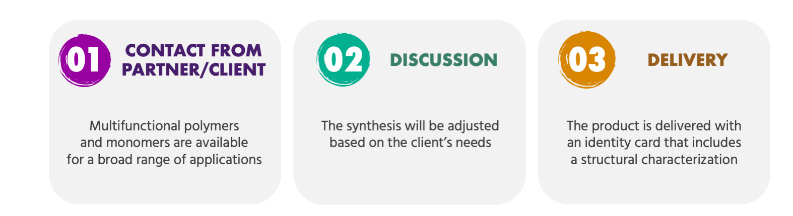 We can synthesize advanced polymers on demand based on LCPO expertise and provide cutting-edge solutions for current industrial challenges